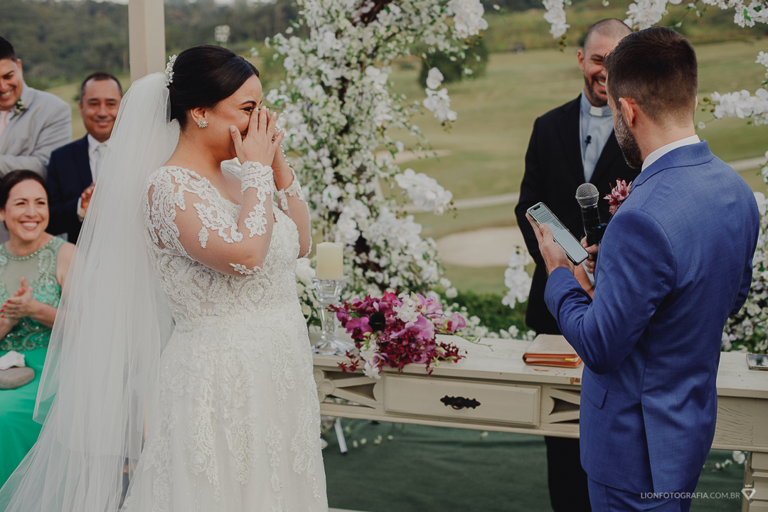 Os noivos Valéria e William surpreenderam a todos seus amigos e familiares ao revelarem uma surpresa durante a cerimônia de casamento realizada em São Roque - SP.