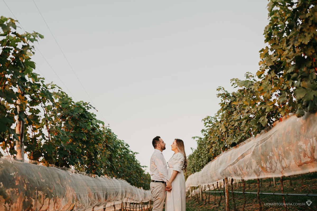 O ensaio aconteceu na deslumbrante Adega Alma Galiza, localizada na Fazenda Bagadá em São Roque, SP. Este lugar encantador é conhecido por seus vinhedos espetaculares e ambiente tranquilo. Tivemos a oportunidade de fotografar nos parreirais e finalizar com um pôr do sol de tirar o fôlego, criando memórias que Camila e Pato vão guardar para sempre.