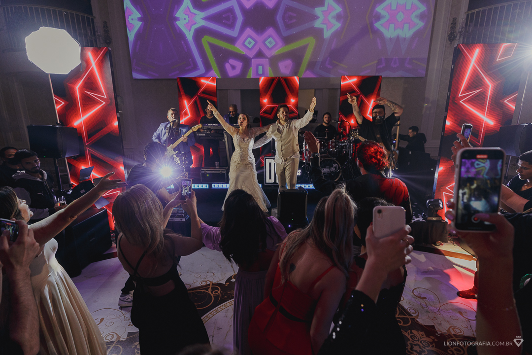 Após o enlace, Thais e Dennys receberam seus convidados com uma grande festa no Buffet Tulipas na Villa Valentim.