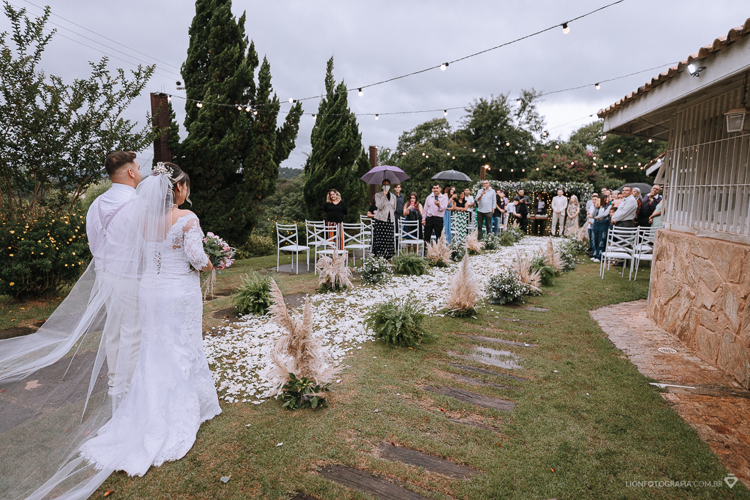 Os convidados já estavam todos presentes e como uma benção divína a chuva parou e a cerimônia pode começar como planejado!
