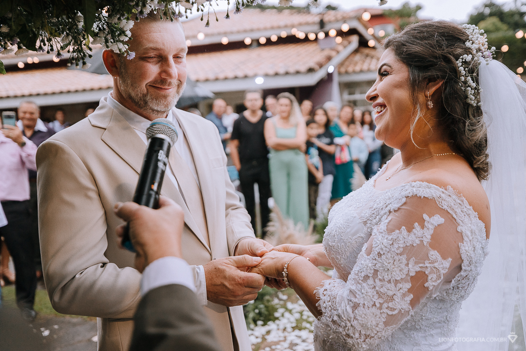 Finalmente, chegou o momento do tão esperado "sim". Janaína e Leandro se olharam profundamente e disseram, em coro: "sim, eu aceito". Foi um momento de muita emoção e lágrimas, tanto para os noivos quanto para os convidados.