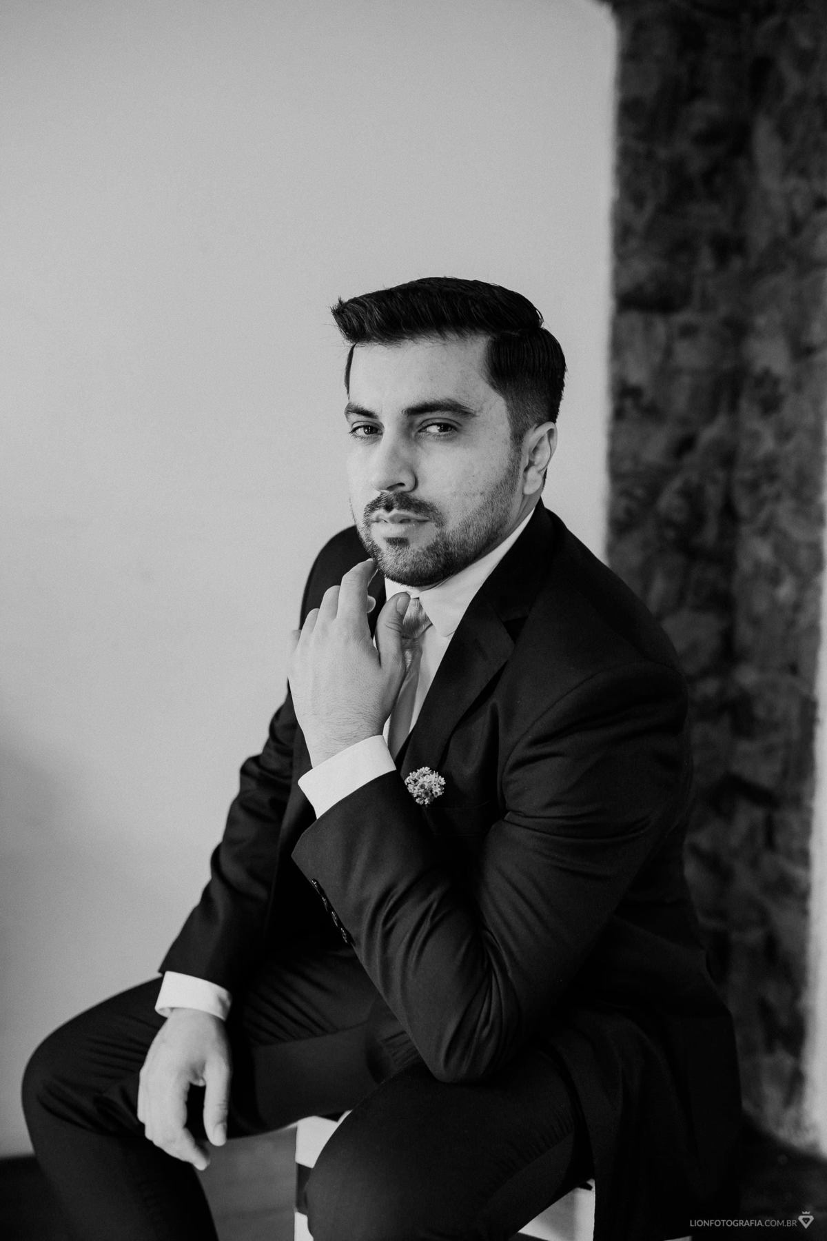 Enquanto isso, Igor se arrumava no próprio local do casamento, rodeado por amigos e padrinhos. Esses momentos de preparação renderam belos retratos, cheios de amizade e expectativa.