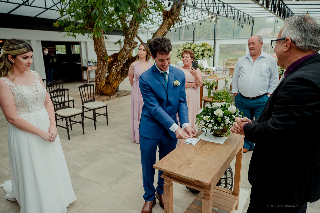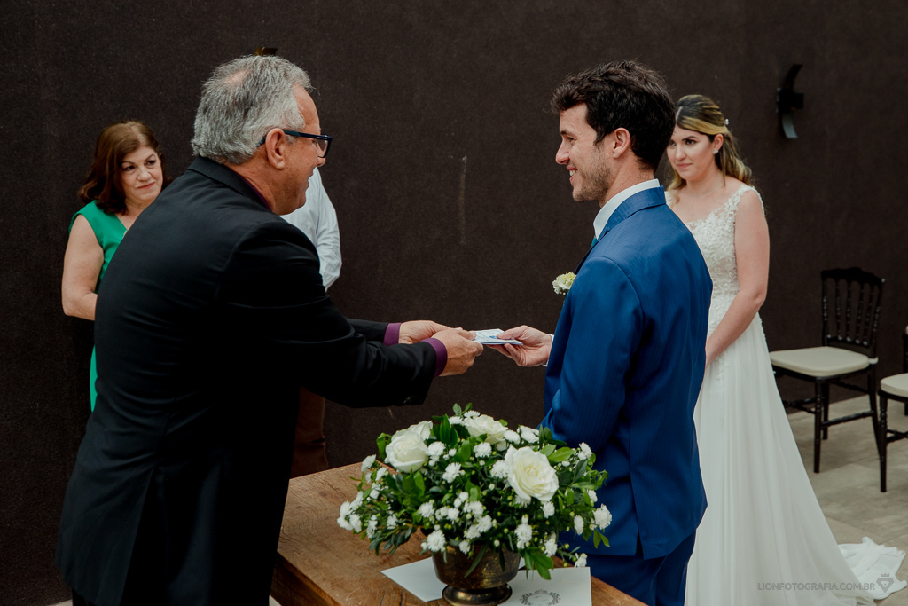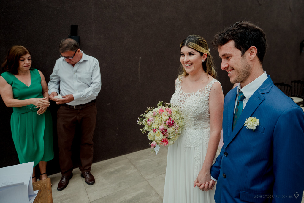O casal oficializou o casamento com a presença do juiz do cartório civil e juiz de paz.