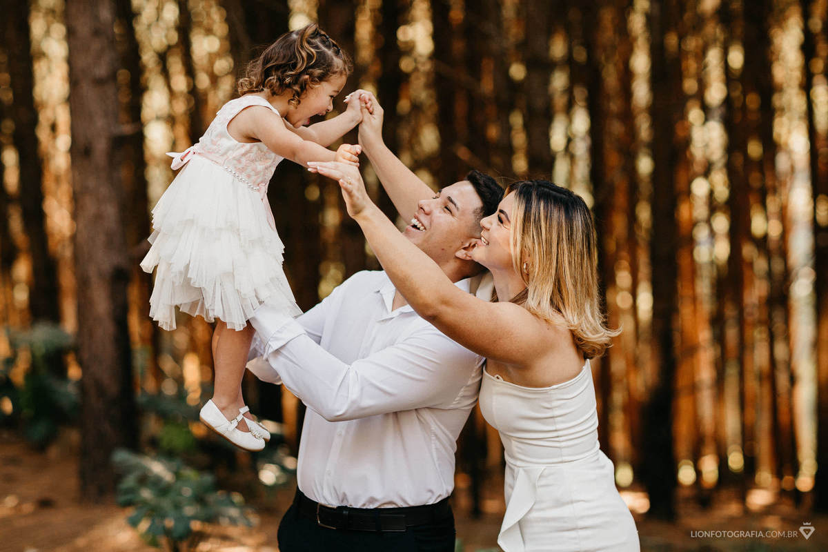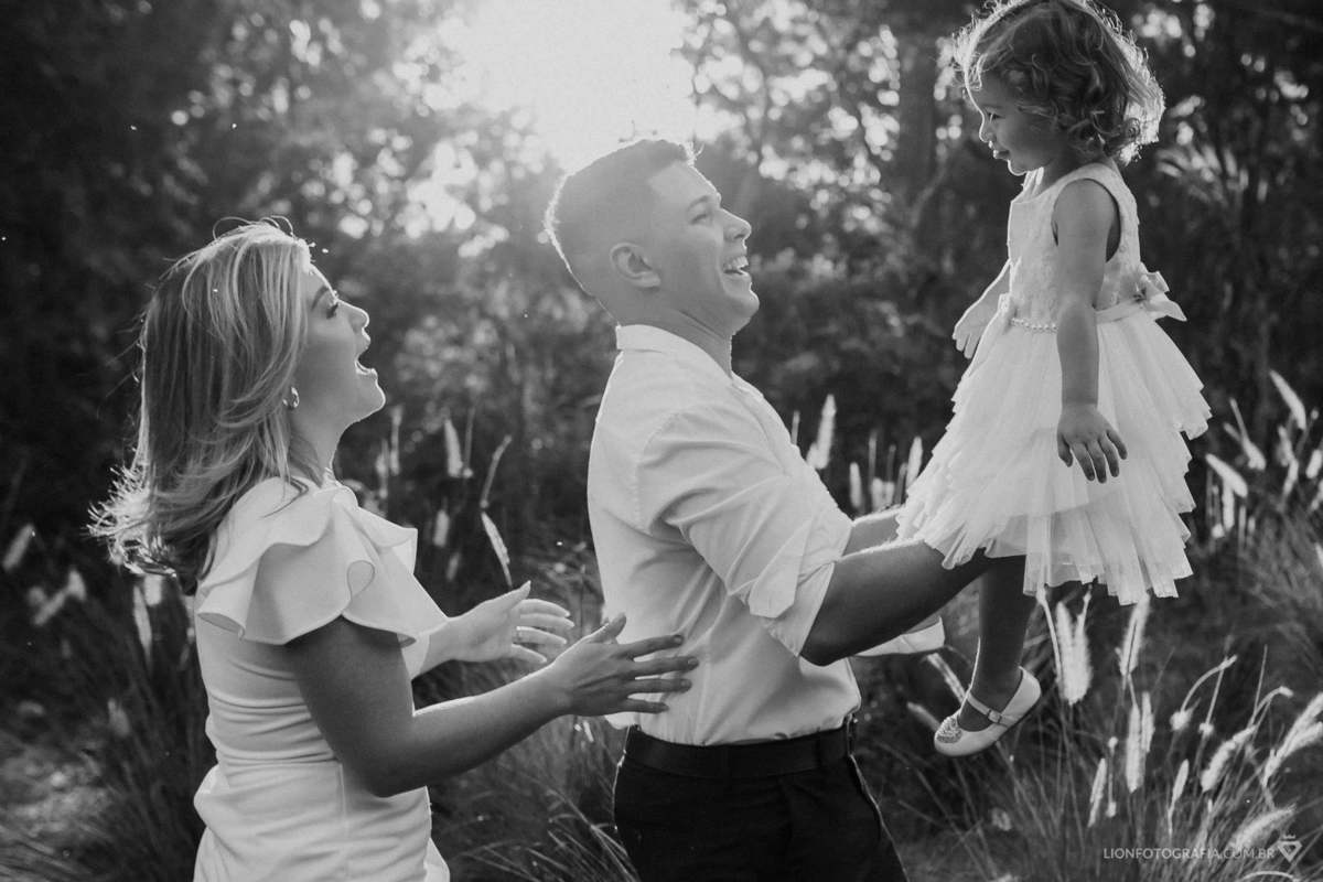 A sessão foi ainda mais especial com a participação da pequena Malu, filha do casal, de apenas dois aninhos. A presença dela rendeu lindas fotos e sorrisos, trazendo uma alegria contagiante ao ensaio. Capturamos a essência do amor e da cumplicidade da família em meio à natureza exuberante e à luz dourada do entardecer.