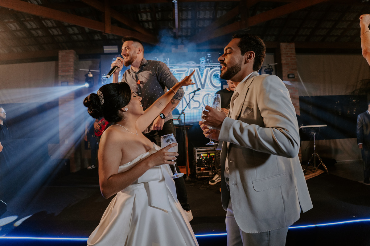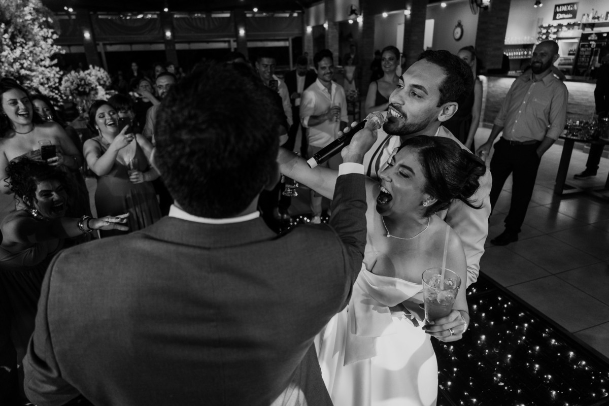 Depois da cerimônia, os convidados seguiram para a festa no Dionísio, onde a energia foi contagiante. Muita música, abraços sinceros e celebração marcaram a noite, tornando o casamento de Bárbara e João um verdadeiro retrato de amor e alegria.