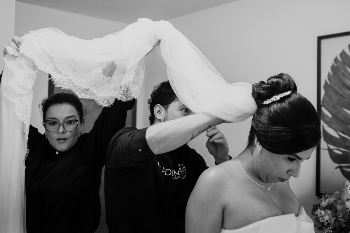 O making of da noiva aconteceu no Espaço Garden, um local encantador que trouxe leveza e descontração aos preparativos. Entre risadas e momentos de carinho com as madrinhas, Bárbara viveu cada detalhe dessa manhã especial antes de seguir para a cerimônia.