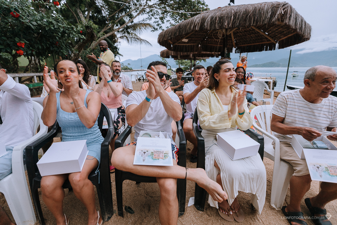 E este sonho se tornou realidade para o casal Cássia e Diego que poderam receber seus familiares e amigos na Ilha do Cedro, em Paraty - RJ para um momento pra lá de especial!