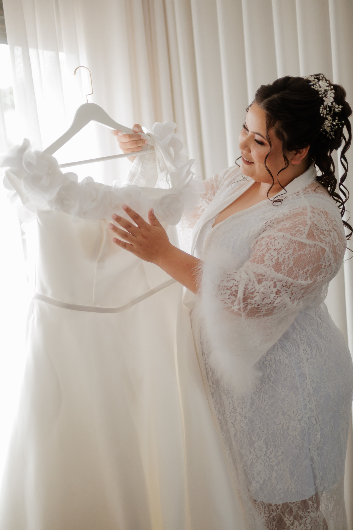 O dia começou no Studio Maria Isadora, onde acompanhamos o making of da Rafa — daqueles momentos cheios de emoção, preparação e atenção aos detalhes. A partir dali, cada sorriso e cada olhar anunciavam a beleza do que estava por vir.